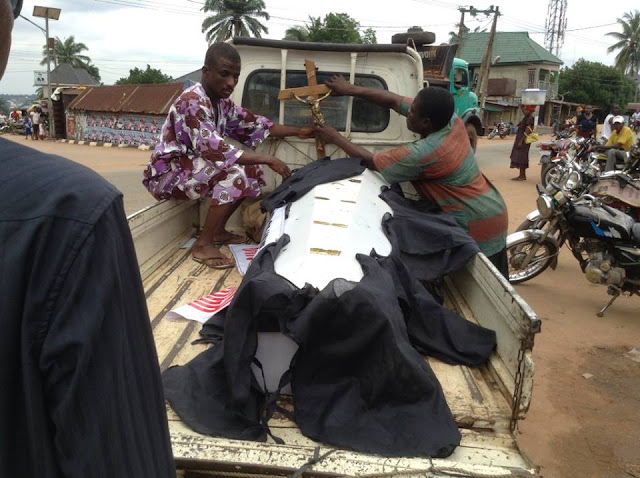 The historic event was started with a 21 gun salute at Eke-Nkpor Junction and featured prayer-processions from Eke-Nkpor to St Edmunds Catholic Church and ended with lowering of a memorial coffin at the outer part of the Nkpor Community Cemetery along Nkpor-Umuoji Road where their spirits were invoked to go after their killers from generation to generation until they pay for heinous crimes and atrocities committed. A church thanksgiving service is fixed for today, 10th of July 2016.