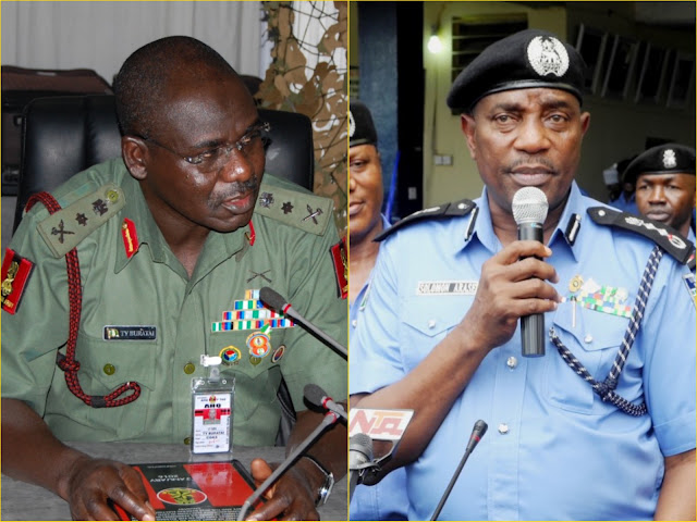 | The Chief of Army Staff, Lieutenant General Tukur Yusuf Buratai (l), Inspector General of Police, Solomon Arase (r) |