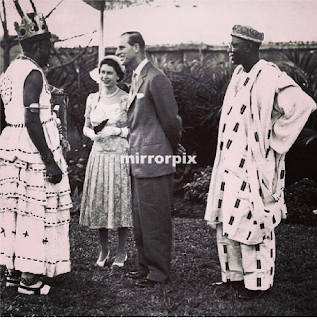 | Queen Elizabeth and her husband Prince Phillip pictured with Nigeria’s first head of state Dr Nnamdi Azikiwe and HRH Obi Okosi, the Obi of Onitsha in the |