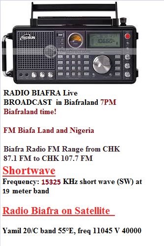 Biafra is a challenge to humanity, a nation that calls for justice and human right; do not miss Radio Biafra program; a world known station that brings you the event as they are. There is genocide going in Biafra and humanity deserves the truth. Tune in and feel the power of truth.